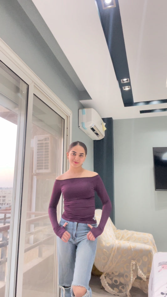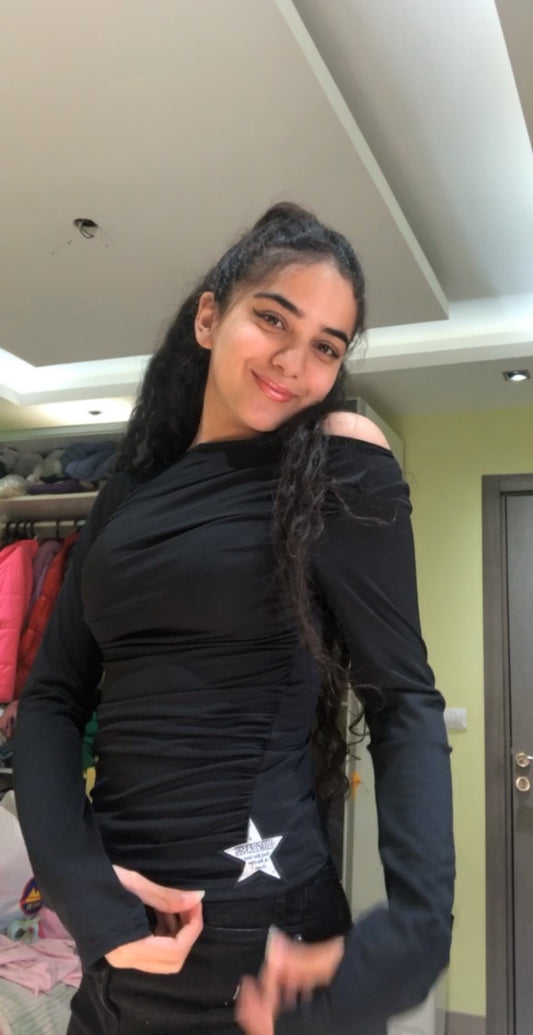 "Light Shades" Long Sleeves One Shoulder Drappe Top