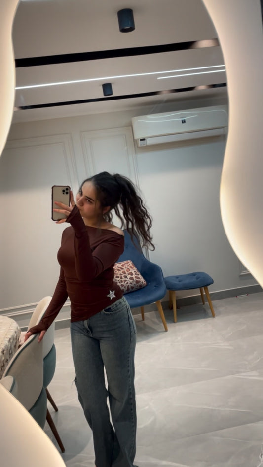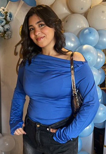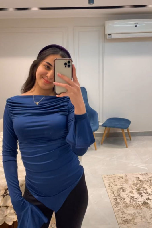 Blue Shades Long Sleeves One Shoulder Drappe Top