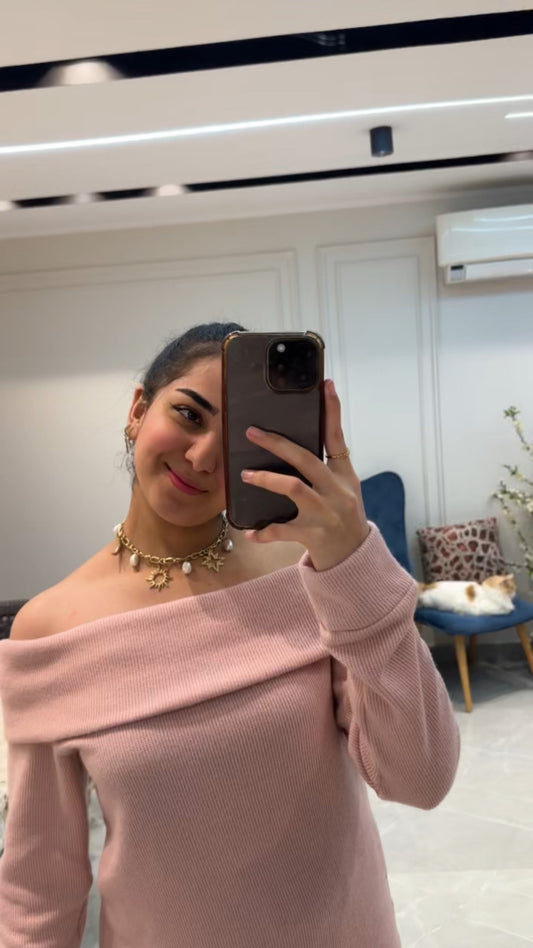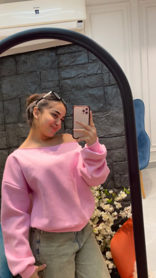 Pink Shades Long Sleeves One Shoulder Drappe Top